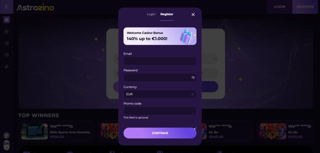 Creating an account at Astrozino Casino is quick and straightforward. Follow the steps below to complete the process and get started.