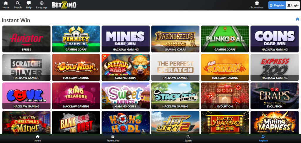 Betzino boasts a sleek and intuitive website design that works seamlessly on both desktop and mobile devices, offering smooth navigation and quick access to games. -