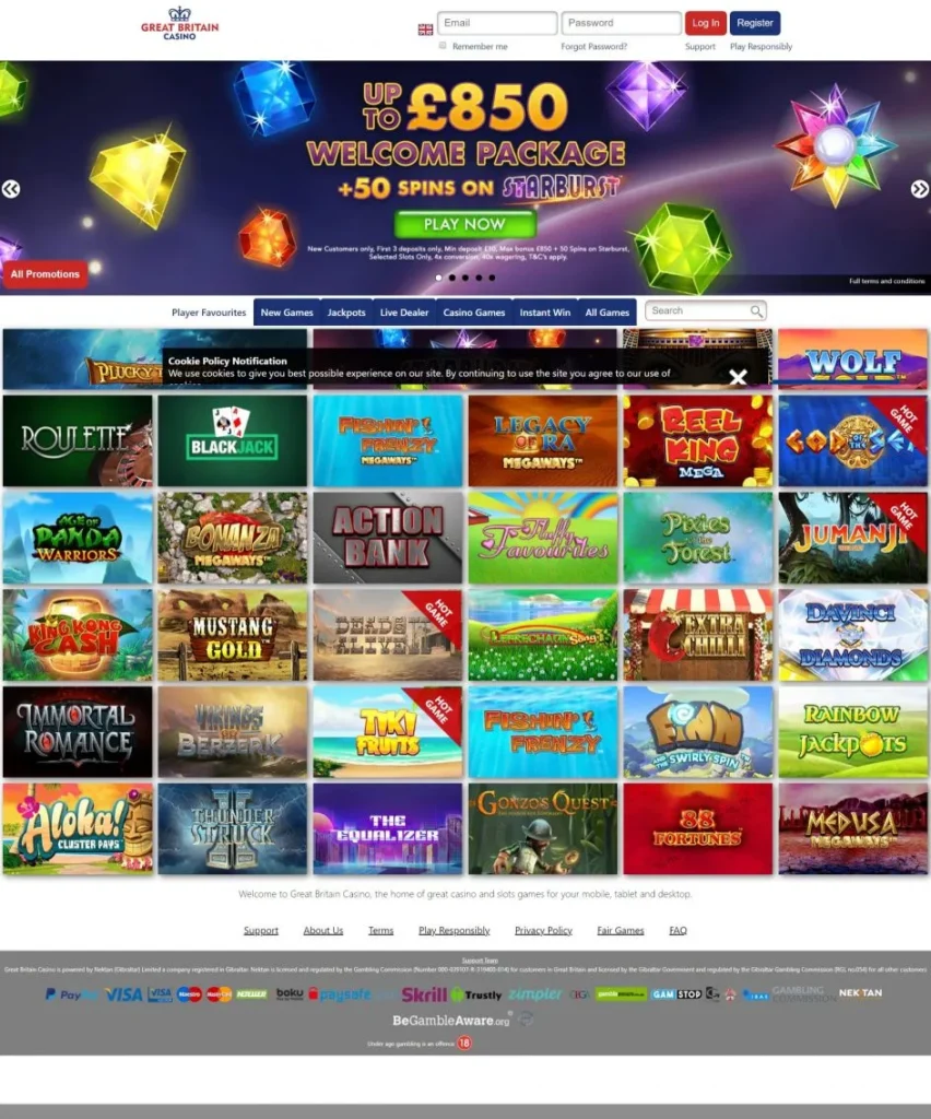 You may win up to 500 free casino spins on the Starburst slot machine when you register as a new member at Britain Play.
