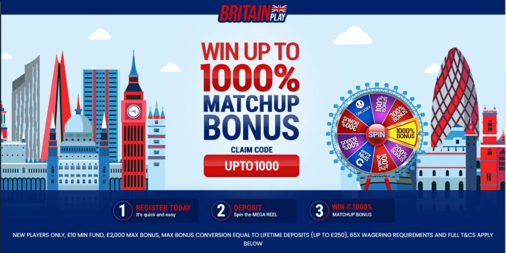 To be eligible, you must first create a Britain Play account and deposit at least £10. The maximum win per ten spins is £8, while the maximum bonus conversion is the total of all lifetime deposits up to a maximum of £250.