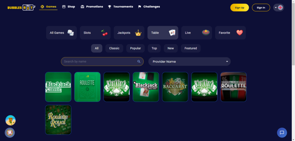 BubblesBet Casino offers over 1700 games from top providers, covering multiple categories: