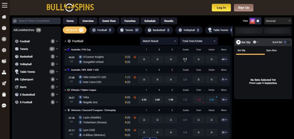 ⚽ Does Bullspins have a sportsbook?