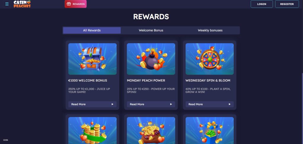 Casino Peaches offers several regular bonuses for both new and returning players. Each promotion has clear rules and is easy to claim.