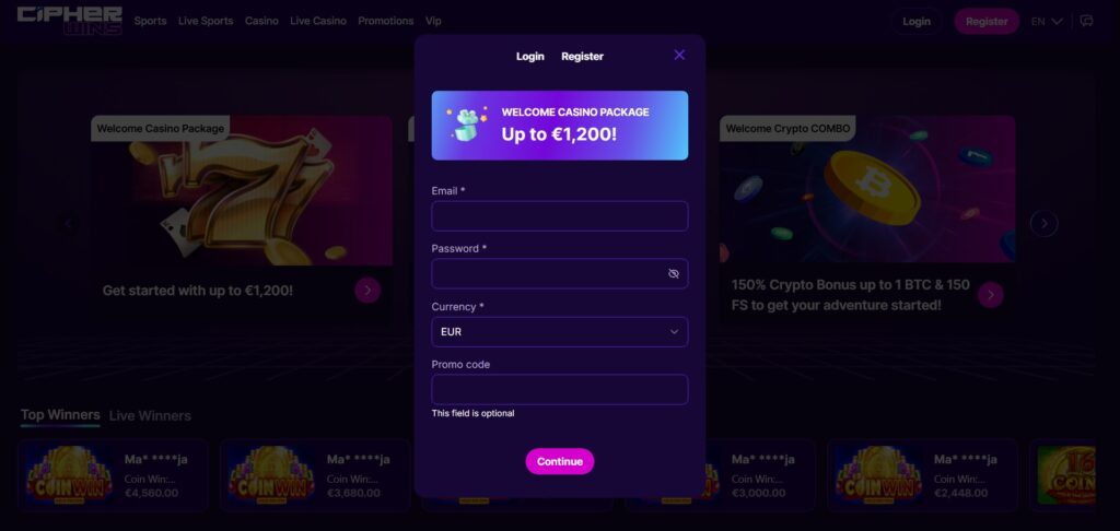 Joining Cipherwins Casino is simple and only takes a few steps. Here’s a clear breakdown of how to set up your account and start playing.