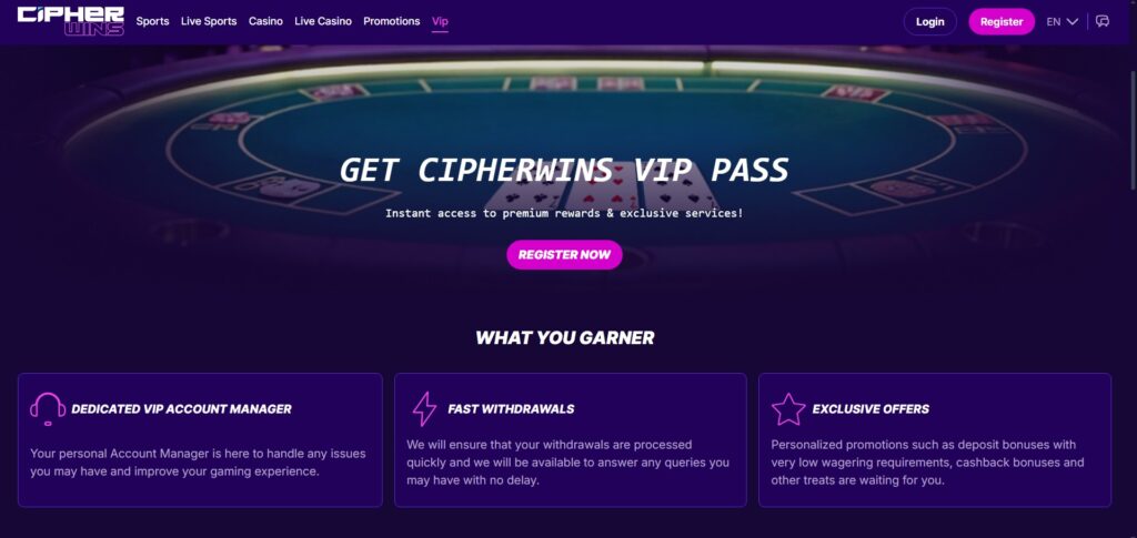 Cipherwins Casino offers a wide range of promotions tailored to different player preferences. Here’s a complete breakdown of the casino, crypto, sports, and VIP bonuses available.