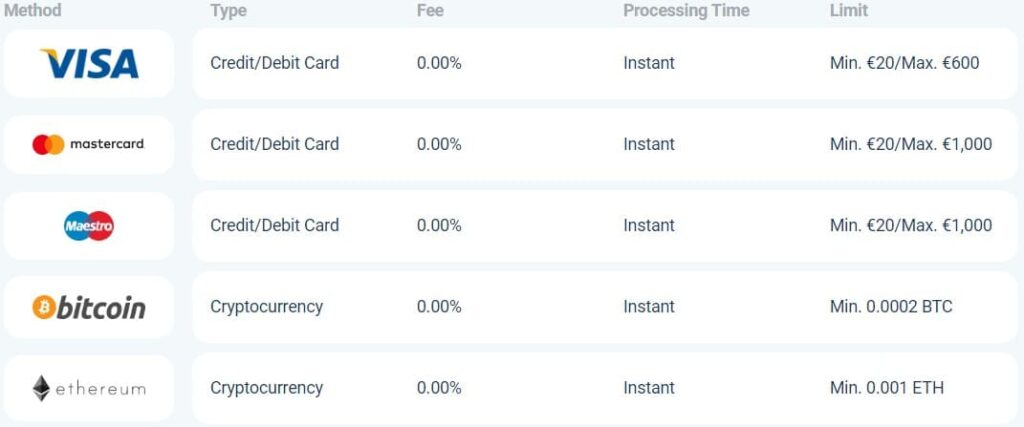 💳 Payment Options | Visa, Mastercard, Bitcoin, Ethereum, Litecoin, Ripple, Jeton, ecoPayz, Perfect Money |