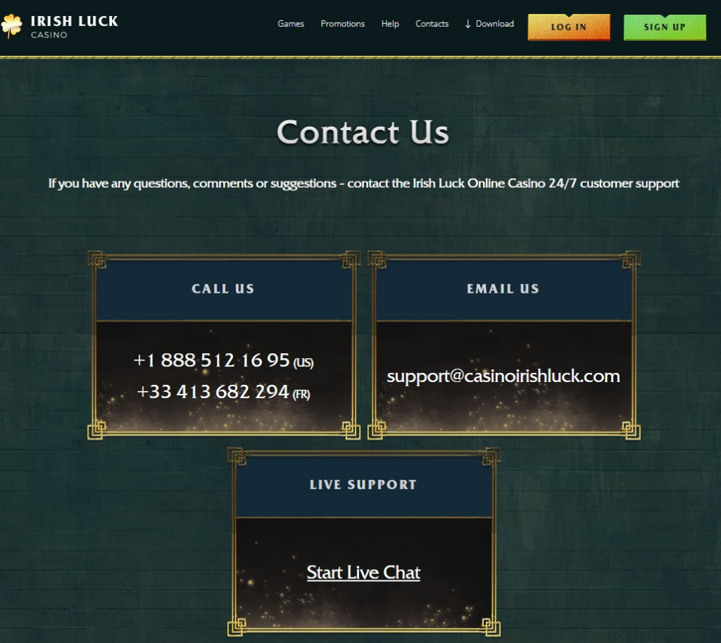 - Customer Support at Irish Luck Casino