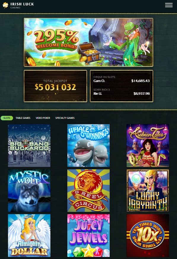 - Games Available at Irish Luck Casino