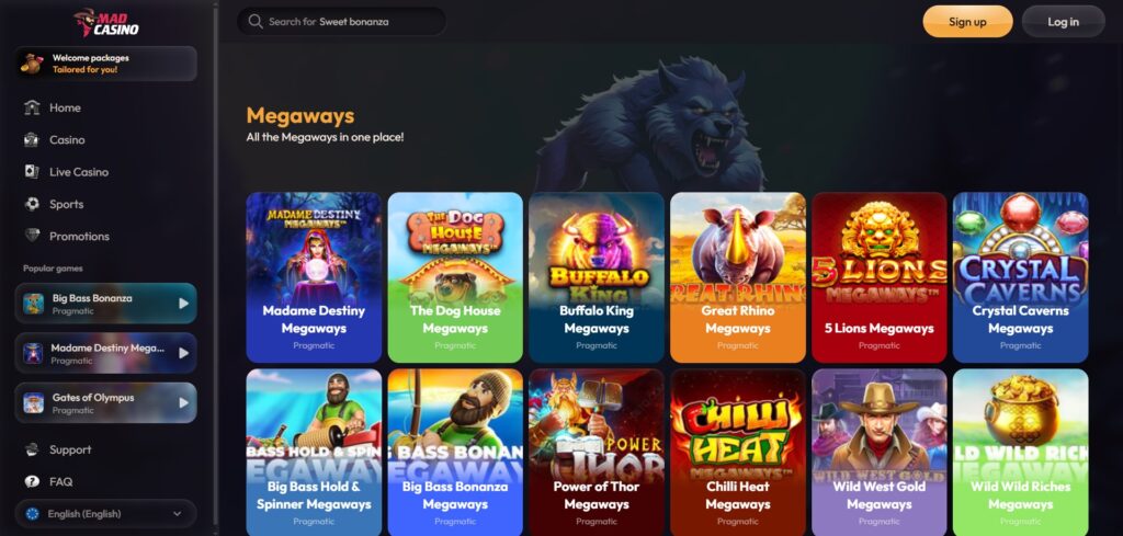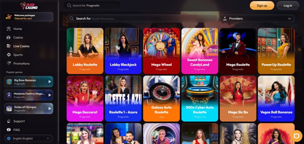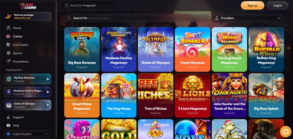 MadCasino currently offers over 550 games, covering a broad set of categories that suit different moods and playing styles. The site doesn’t just fill the library with clones — there’s real variety here, from classic spinners to themed games with unexpected mechanics. Here’s what you’ll find inside: