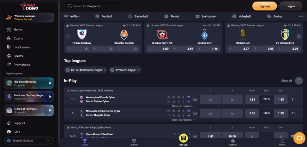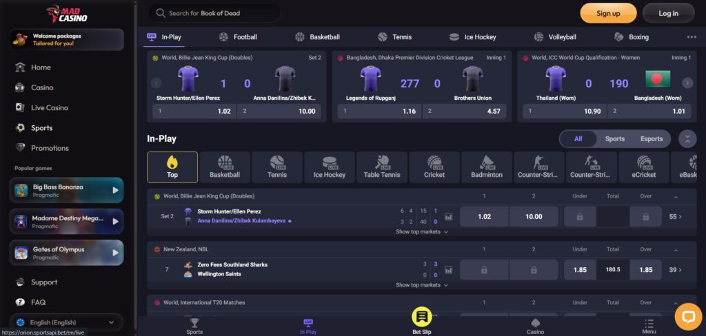 MadCasino offers a well-built sportsbook that covers both physical and digital events. It’s fast to navigate, and odds are updated frequently. The layout is clean, and markets are easy to find.