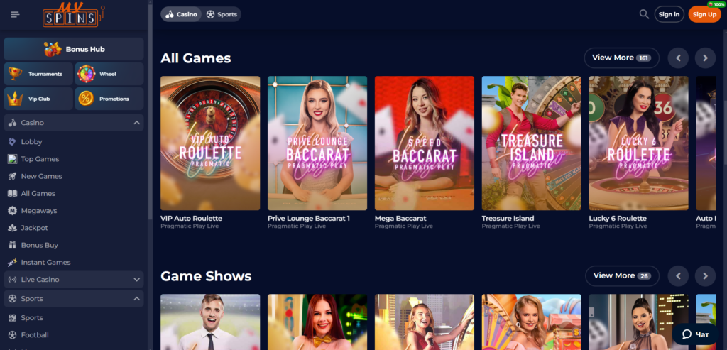 MySpins Casino offers approximately 160 live games, delivering a top-tier live casino experience with: