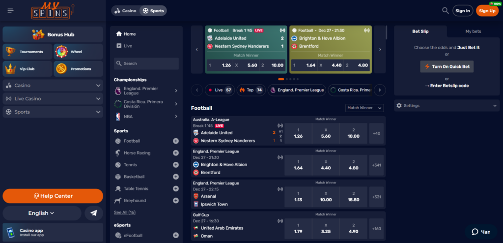 MySpins Casino isn’t just about casino games, it also excels in sports betting, offering:
