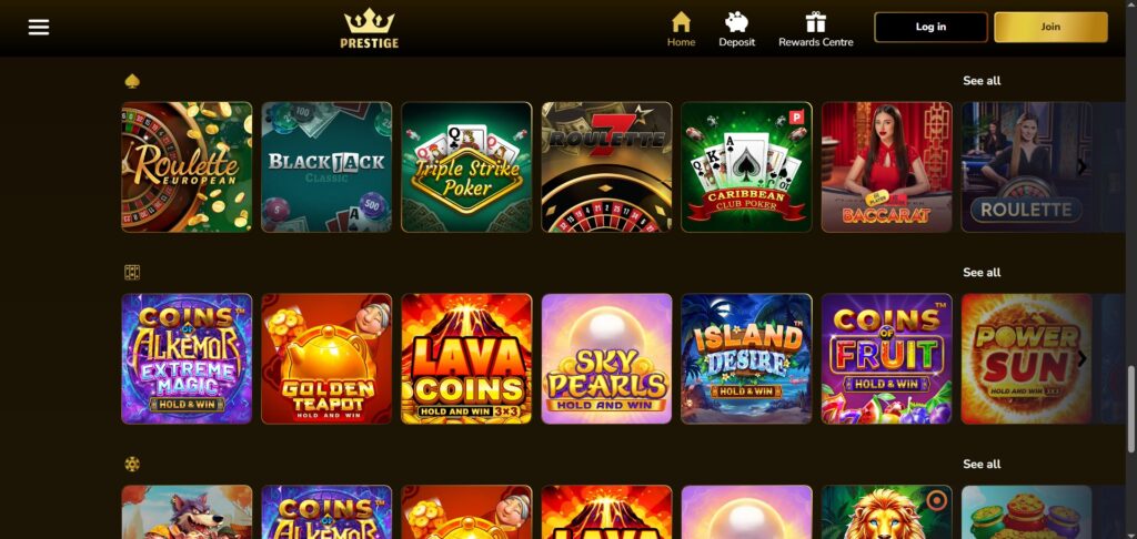 Prestige Casino offers a straightforward and easy-to-use interface, making navigation simple and intuitive. The layout is designed for a seamless user experience.