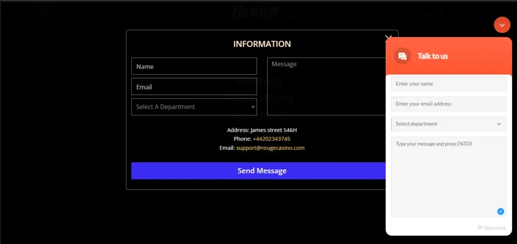 You can contact Rouge customer support via email, telephone, or live chat. The team is available 24/7 and can provide assistance with any issues you may have.