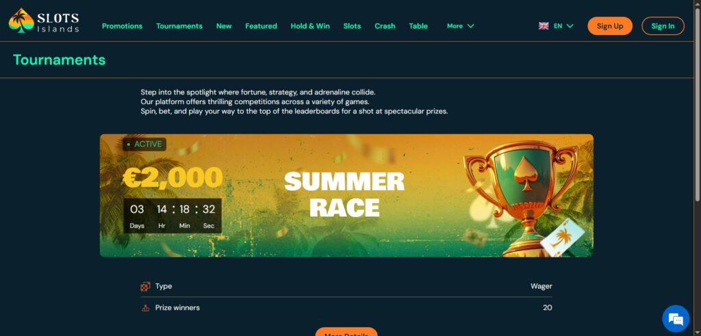 ✓ Summer Race Tournament – Total prize pool £2,000. To participate, players must place real money bets with a minimum stake of £0.50 per spin. The tournament rewards top players based on leaderboard rankings.