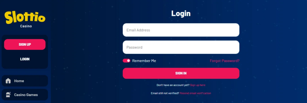 - Visit the website for Slottio: Go to the Slottio website to begin.