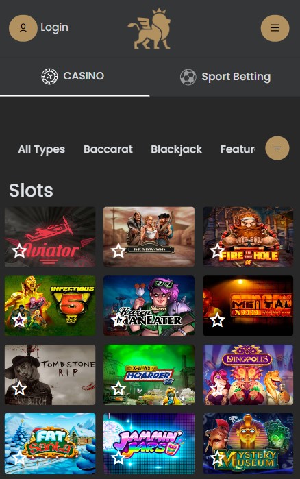 🎮 Games Offered | Slots, Baccarat, Blackjack, Featured Games, Live Casino Games, Roulette, Table Games, Other Games |